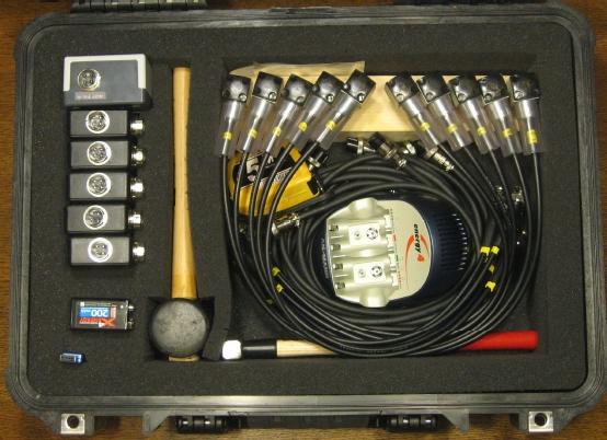 3.          Tap each transducer with a steel hammer to generate sound waves. Fakopp 3D measures the travel times with microsecond precision to each transducer and transmits the data to the computer. 每個換能器將鋼錘產生的應力波在各傳感間三維傳播的行程時間微秒級測量精度的測量并傳輸數據到電腦。